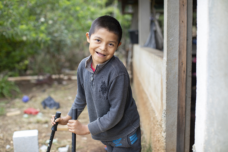 Gaspar Benjamin, 8, from Huehuetenango, Guatemala, was diagnosed with cerebral palsy at age 1. Doctors told his parents he’d never be able to walk. Thanks to several surgeries and physical therapy facilitated by ChildFund, today he is walking with the help of braces and canes.