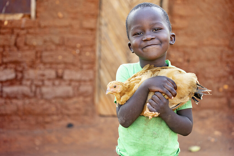 Emmanuell, 4, holds the chicken he received from ChildFund’s Real Gifts Catalog. The eggs the chicken lays have been a valuable source of nutrition for his family in Embu County, Kenya.