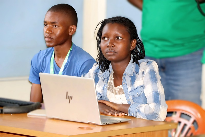 George and Purity, youth enrolled in the Ajira program, learn about digital entrepreneurship.